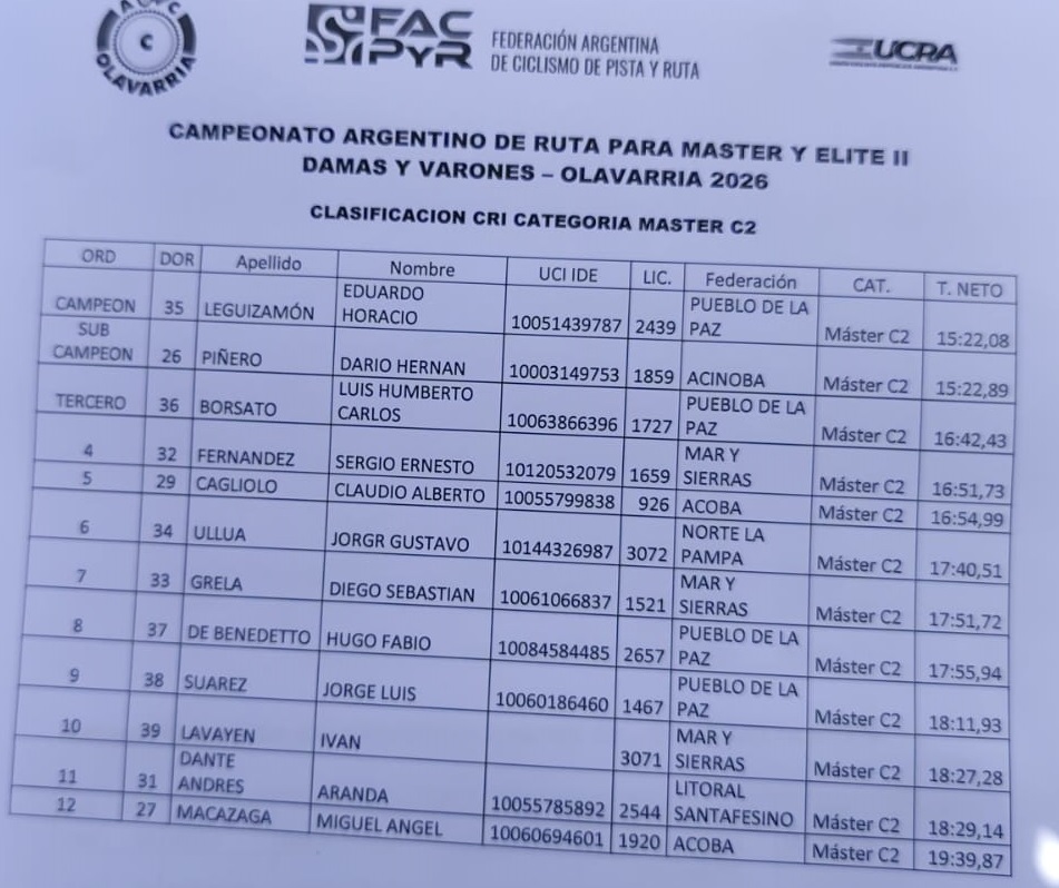 Lucrecia Hernández y Gastón Trumpio fueron medallas de plata en sus respectivas categorías.Comenzó en nuestra ciudad el Campeonato Argentino Máster y Elite II en Olavarría.