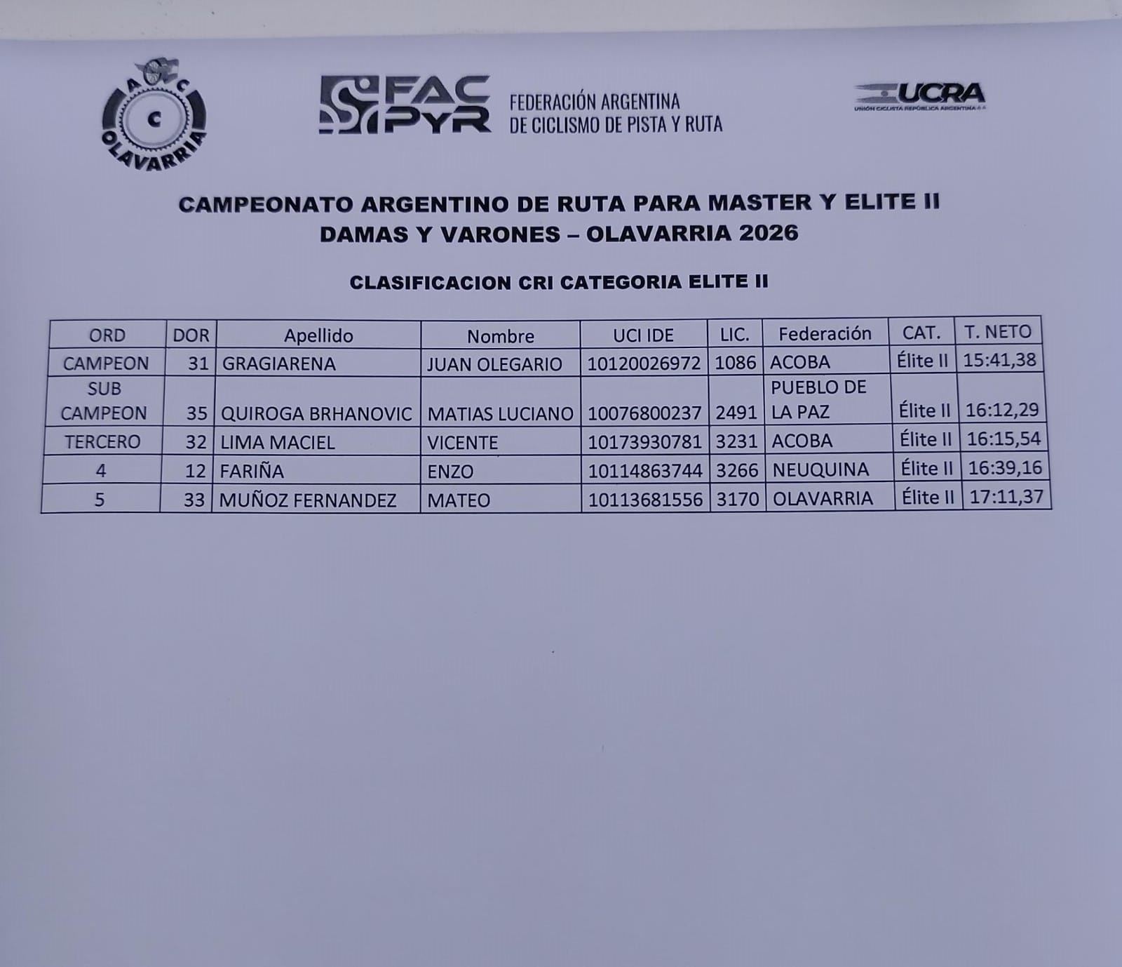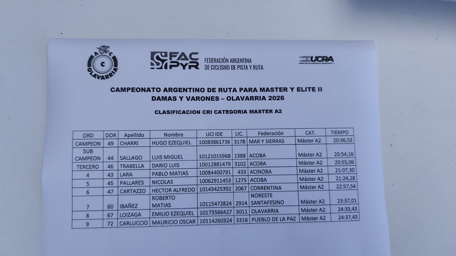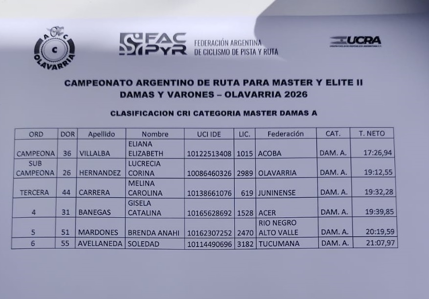 Para destacar lo realizado por Lucrecia Hernández, medalla de plata en la prueba de contrareloj.