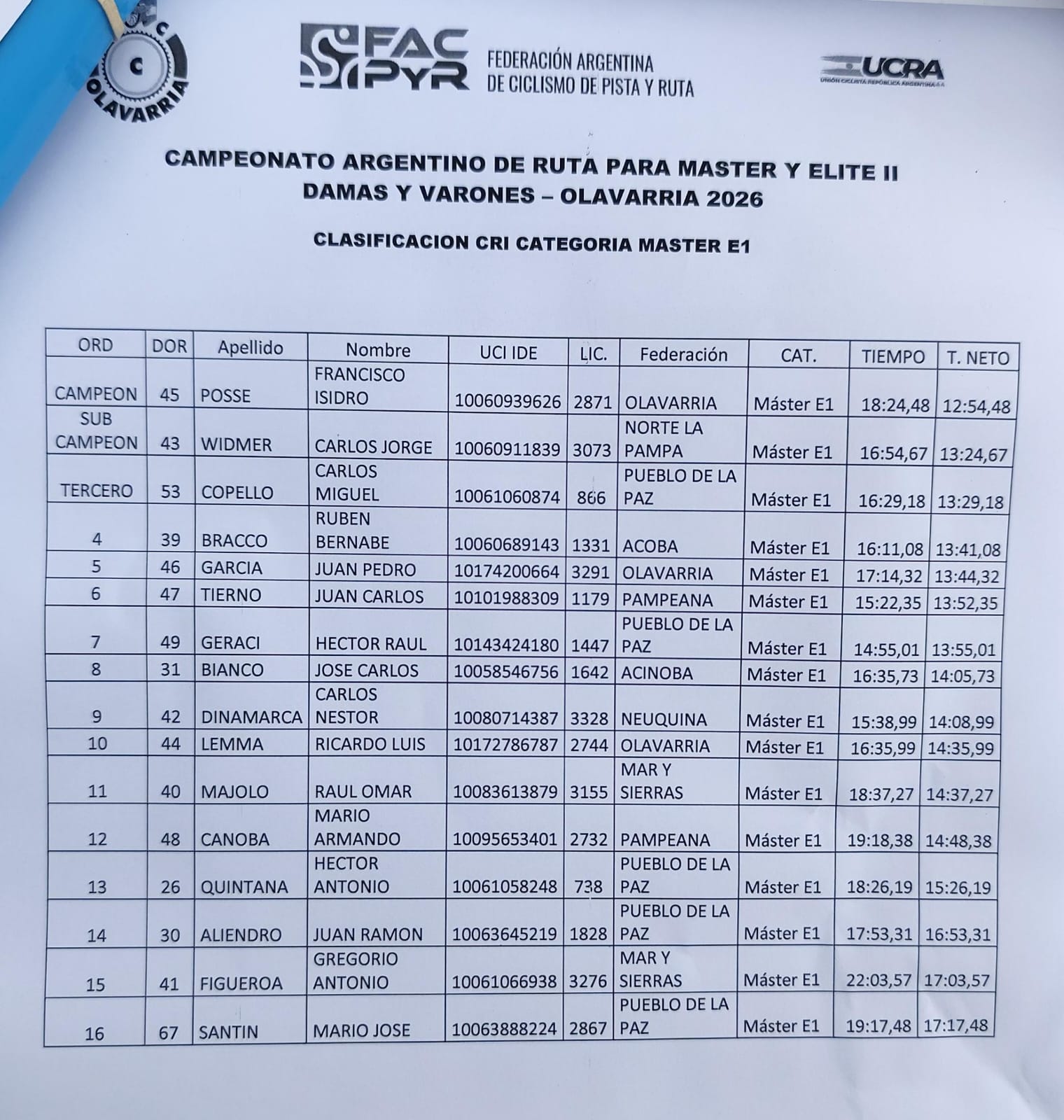 El eterno Francisco Isidro Posse se coronó Campeón Argentino. Lucrecia Hernández y Gastón Trumpio fueron medallas de plata en sus respectivas categorías.
