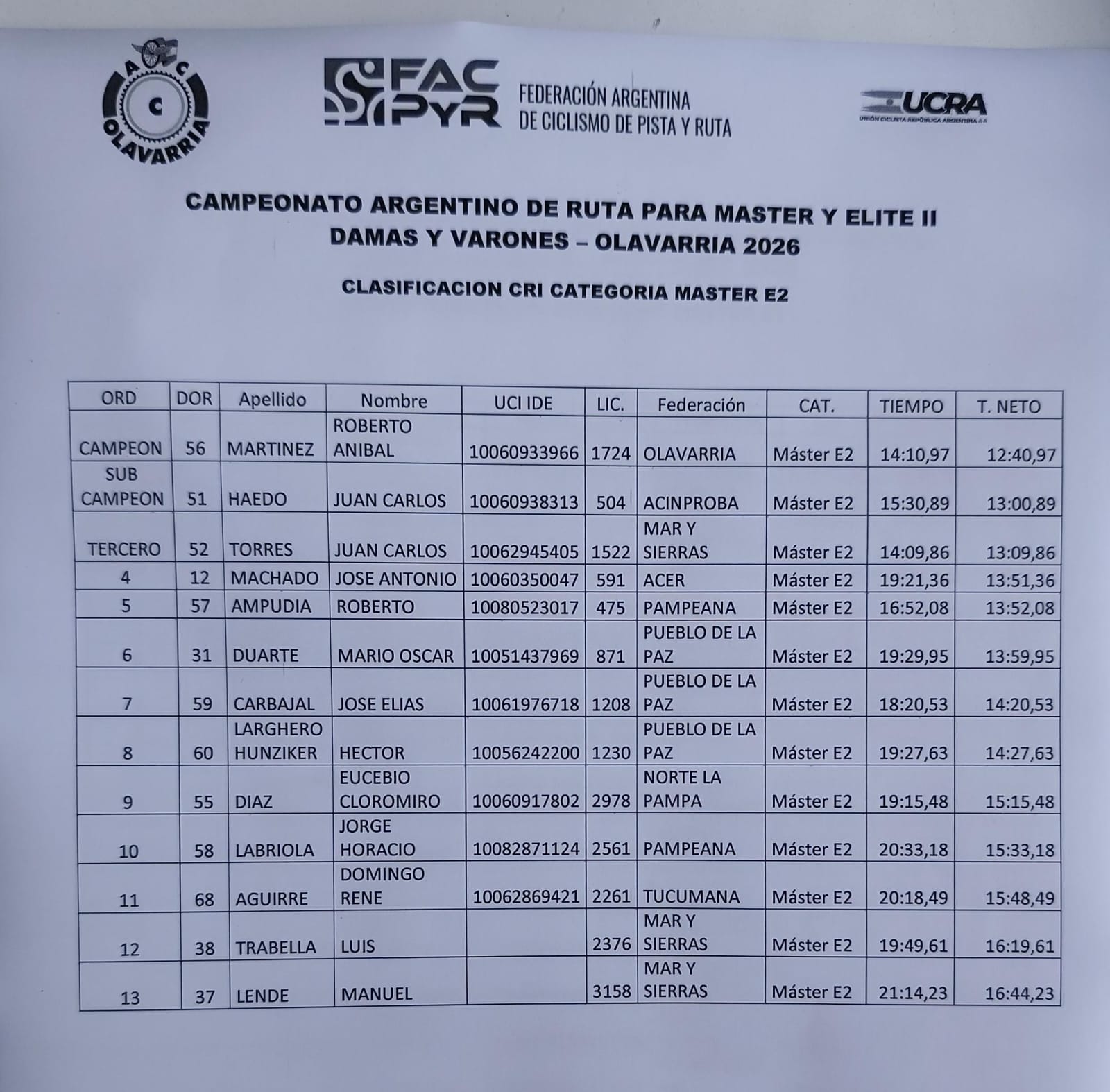Además Roberto Martínez de Necochea, representando a nuestra ciudad fue Campeón