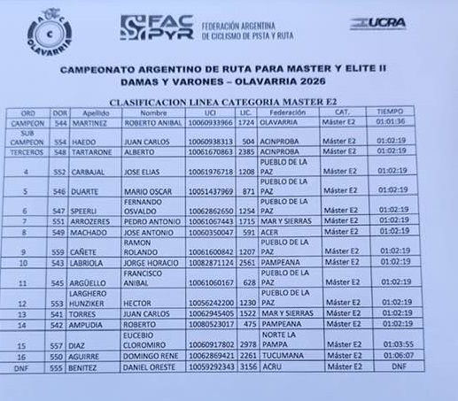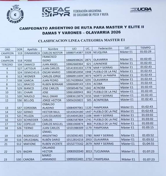 Con un gran marco de competidores y delegaciones, sigue adelante en nuestra ciudad el Campeonato Argentino de ciclismo en ruta para las categorías Master y Elite II.