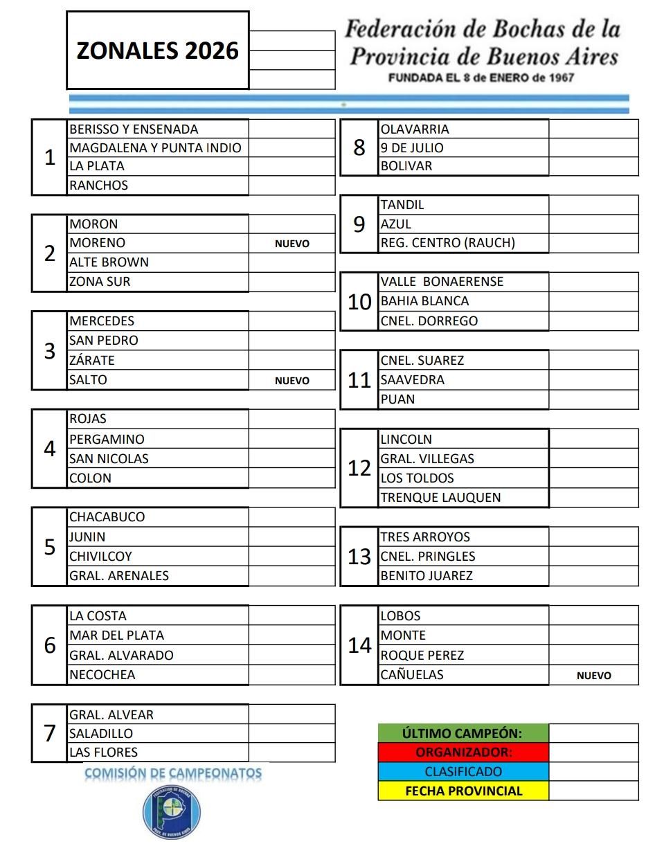 Se confirmaron las catorce zonas que tendrá la Provincia de Buenos Aires en este 2026. Además completarán los 16 de cada Provincial el último campeón y el organizador.