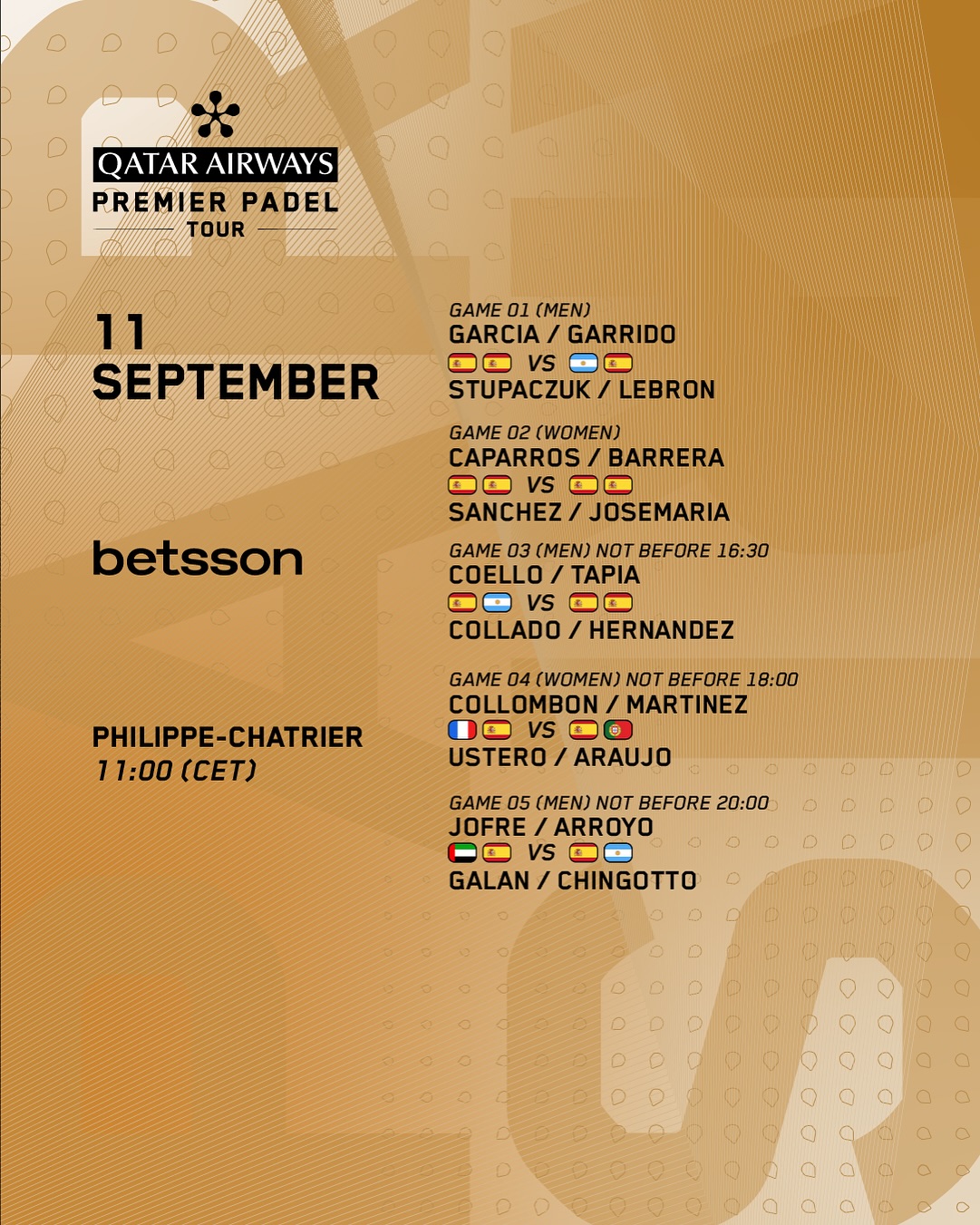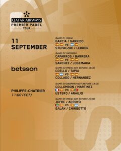 | Íñigo Jofre/Álex Arroyo vs Ale Galán/Fede Chingotto | 20:00h (15:00h Arg) |