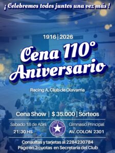 Cena Show por el 110° Aniversario de Racing A. Club de Olavarría.