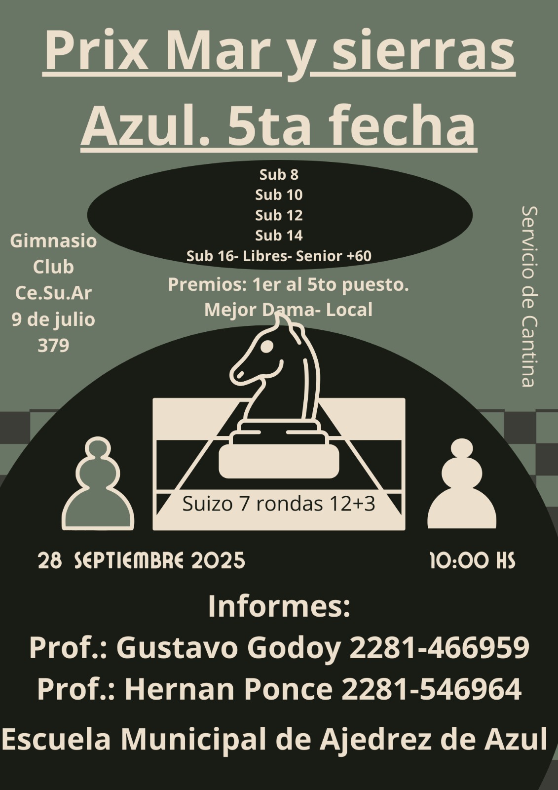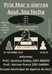 Trebejistas de Bolívar, Lobería, Rauch, Necochea, Tandil, Guaminí, Olavarría, Laprida y Azul se darán cita el próximo domingo a la realización de la 5ta. fecha del Torneo de Ajedrez Mar y Sierras, el que tendrá por escenario el Gimnasio del Club Cesuar, en la vecina ciudad de Azul.
