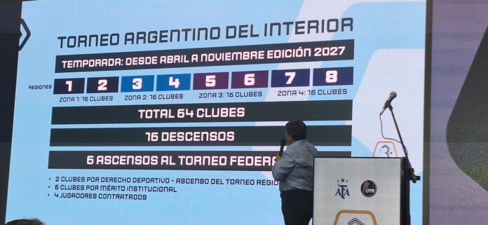 En la tercera reunión de dirigentes de todo el país realizada en el estadio cubierto de Instituto, el Consejo Federal lanzó oficialmente el nuevo Torneo Argentino del Interior que comenzará en Abril de 2027 y se ubicará como la segunda categoría en importancia detrás del Federal A y por encima del Torneo Regional. ASCENSO DEL INTERIOR pudo saber, en exclusiva, los detalles del proyecto: formato, equipos, régimen de ascensos y descensos y los cambios que también habrá para el Torneo Regional y el Federal A.