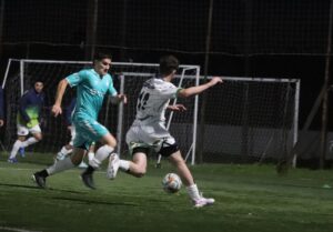 A los 31′ impresionante cabezazo de Franco Aguirre y otra vez el arquero de Embajadores que salvó su arco.