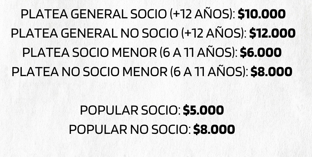 Desde las redes sociales albinegras, Estudiantes, que será local, dio a publicidad los precios de las entradas a plateas y generales para socios y los que no.