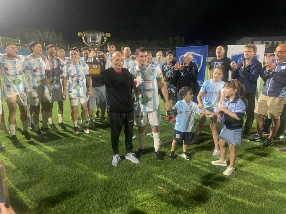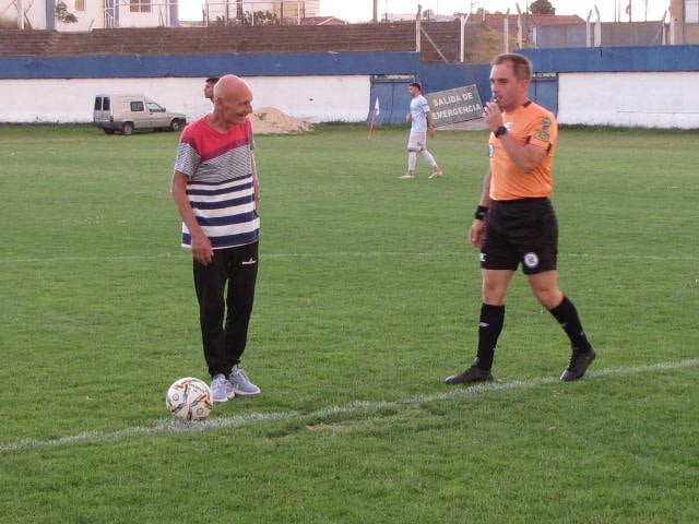 José «Tito» Alonso: el puntapié inicial y el festejo con la Copa. Entre los presentes, el intendente Municipal Maximiliano Wesner.