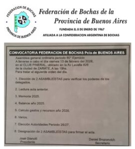 Renovación de autoridades en la Federación de Bochas de la Provincia de Buenos Aires.