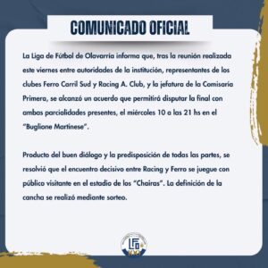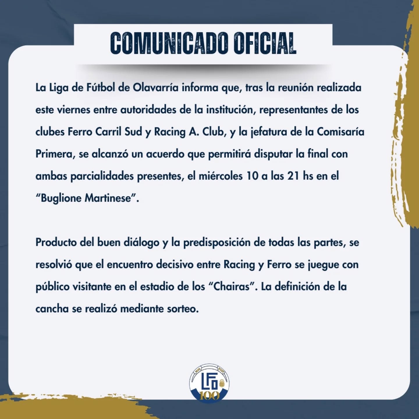La posición de Estudiantes motivó una trascendente reunión entre las autoridades policiales y los dirigentes Roberto Vidal y Sergio Casilli por parte de Ferro, Mario Giacomasso en representación de Racing y Rubén Novillo por la Liga de Fútbol de Olavarría.