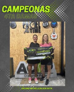 Por el lado de las damas, en Cuarta categoría, Michelle Anzuino y Katia Block se alzaron con el título luego de derrotar a Natalia Riccobene y Mercedes Wagner por 6/7, 6/3 y 7/6, con Block como MVP del certamen.