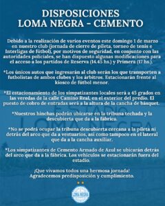 Restricciones en el ingreso al Estadio de Loma Negra para el partido de este domingo por el Interligas.