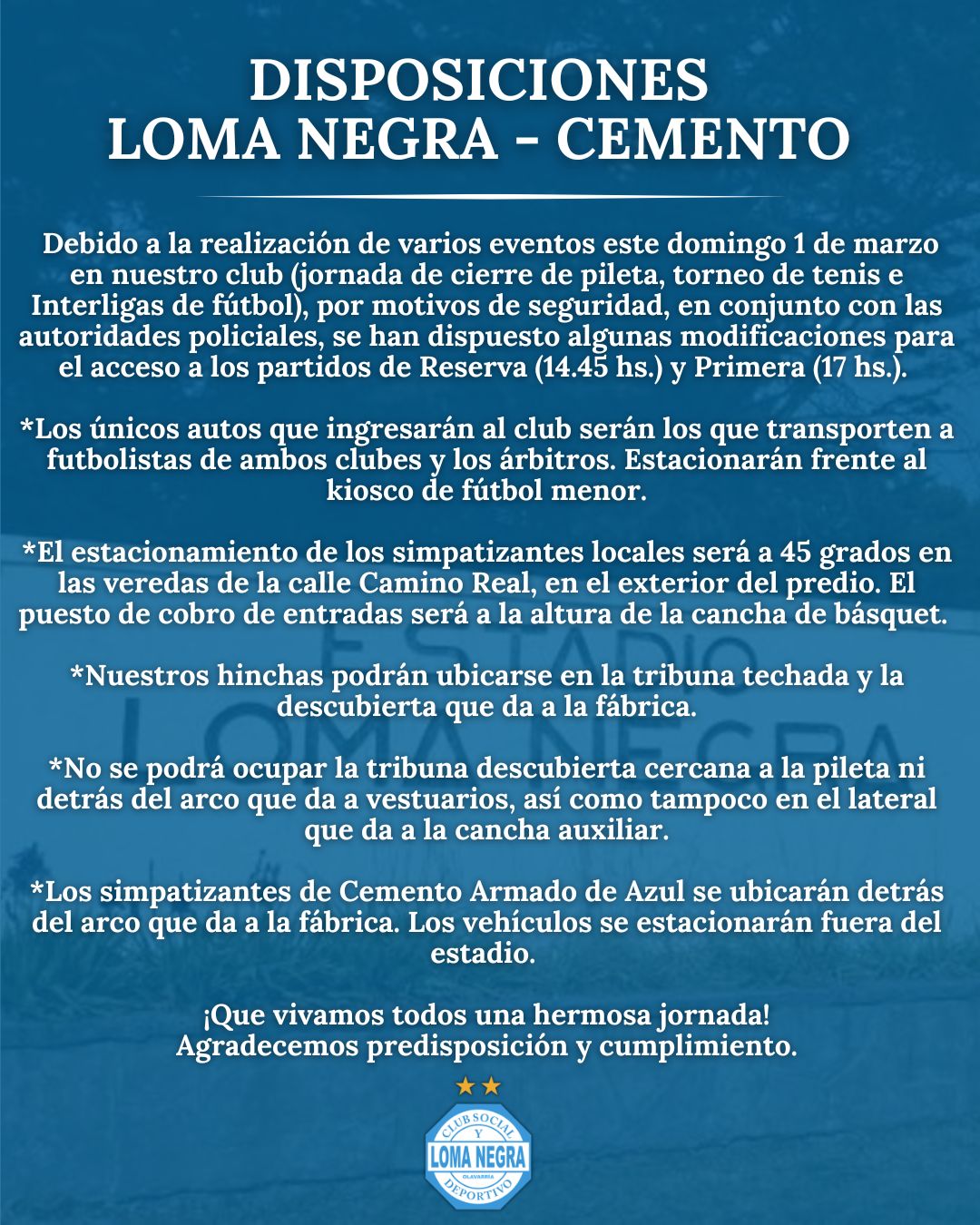 Por distintos eventos en la localidad, habrá que cumplir las disposiciones que se especifican en el comunicado de la entidad que compartimos.