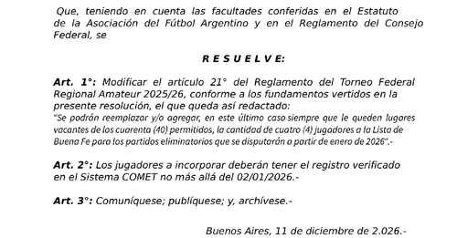 Fútbol Se podrán sustituir o agregar cuatro jugadores para lo que viene del Regional Por Emblema Deportivo - 17 de diciembre de 2025 0 206 FacebookXPinterestWhatsApp Agregan que será siempre que queden vacantes para los cuarenta permitidos. Se podrán sustituir o agregar cuatro jugadores para lo que viene del Regional. Será siempre que queden vacantes para los cuarenta permitidos. LA NOTA