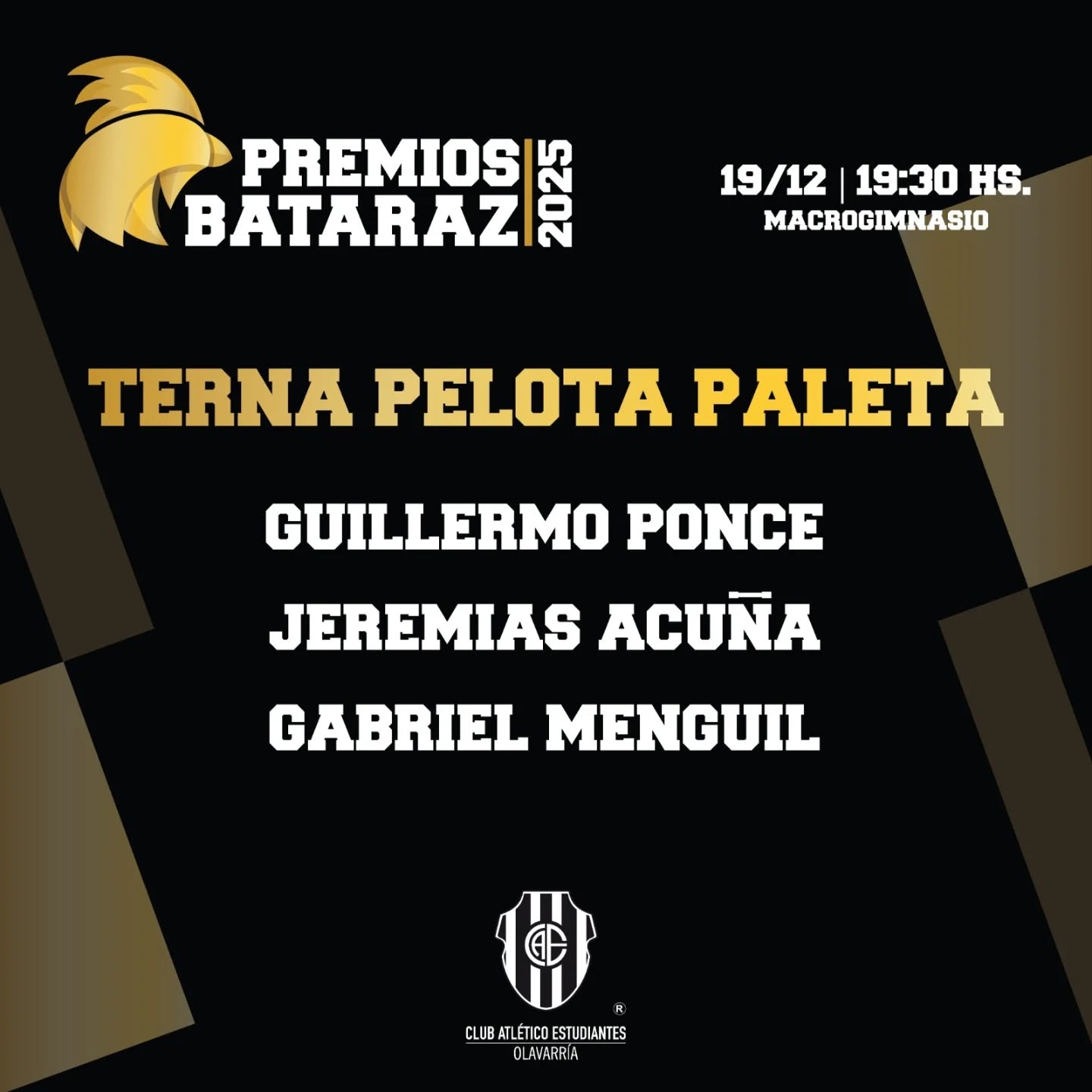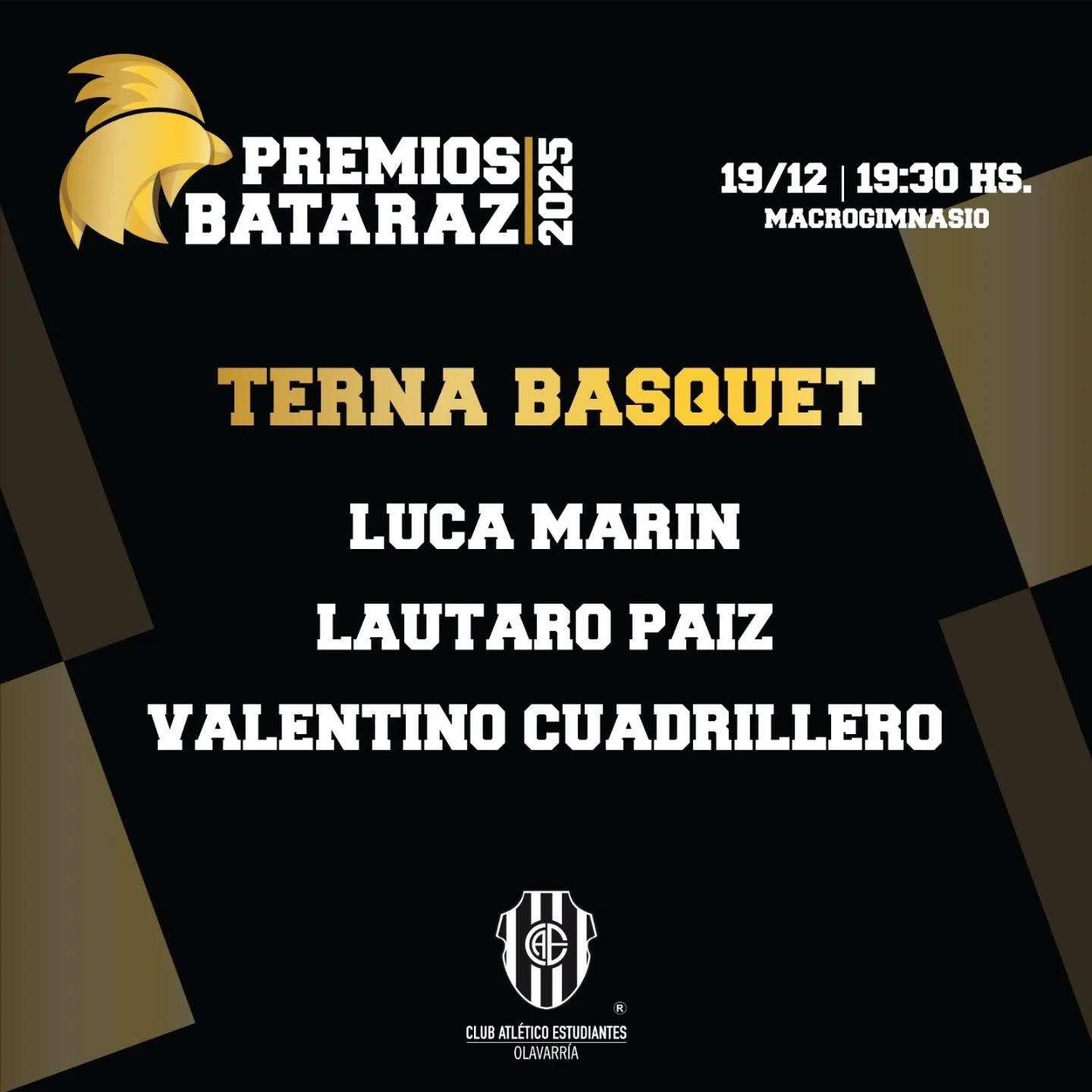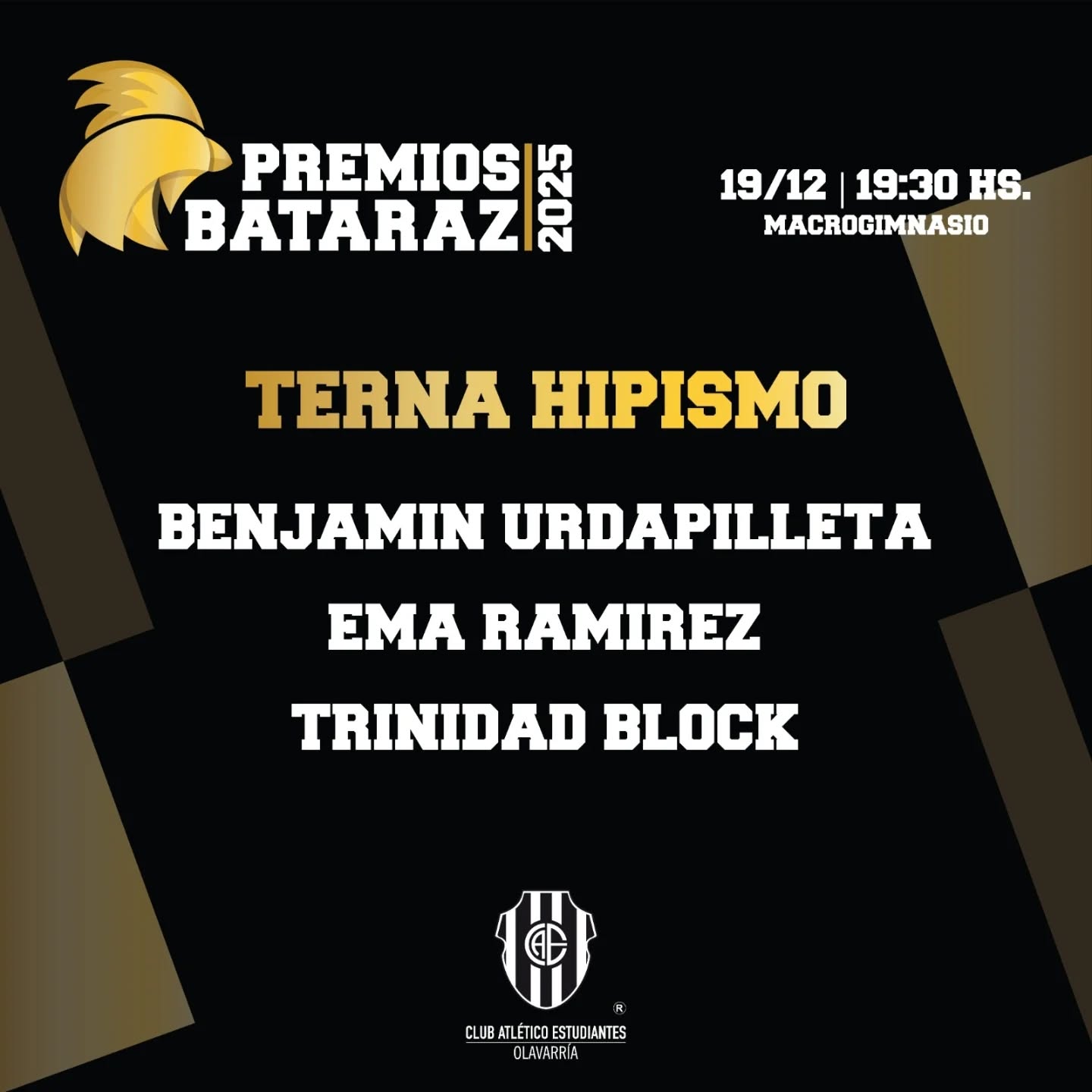 La Comisión Directiva del Club Atlético Estudiantes tiene el agrado de invitar a sus socios y socias a participar de la ceremonia de cierre de año, en la que se realizará la entrega de los Premios Bataraz 2025, distinción que reconoce a los y las deportistas más destacados de la institución a lo largo de la temporada.