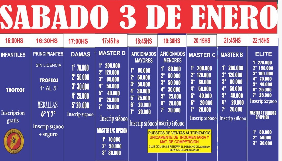 El programa, que organizó el Club Ciclista Azuleño, estará compuesto de 9 carreras que les darán la posibilidad a doce categorías para más de siete horas del mejor ciclismo de la región.