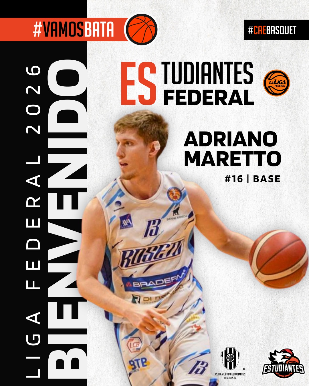 De cara a la próxima temporada en la Liga Federal Adriano Maretto, se convirtió en el cuarto refuerzo del equipo y llega al Bata para aportar jerarquía, liderazgo y protagonismo en la conducción.