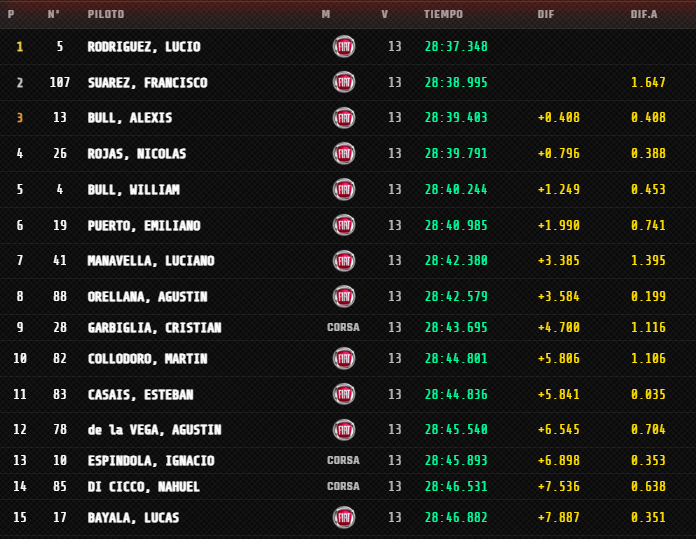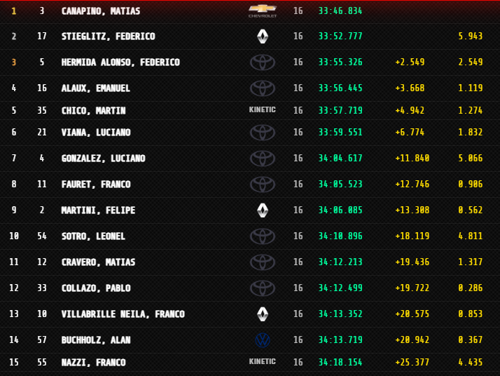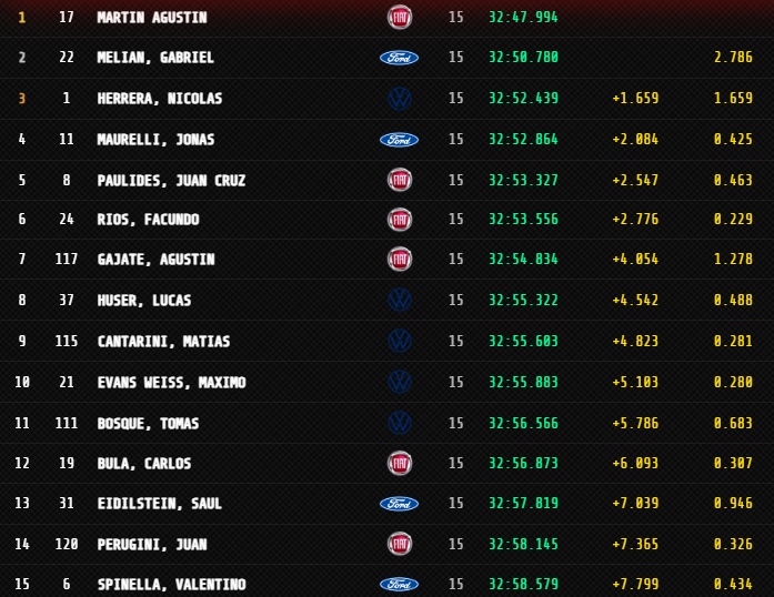 Abandonaron Nicolás Pezzucchi y Nicolás Benito.Fue descalificado Santiago Tambucci