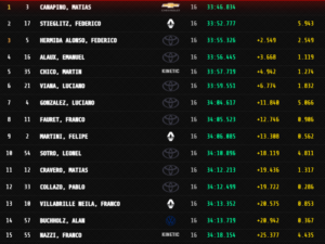 4° Nicolás Rojas – 10° Martín Collodoro – No finalizó Xavier Gorostieta