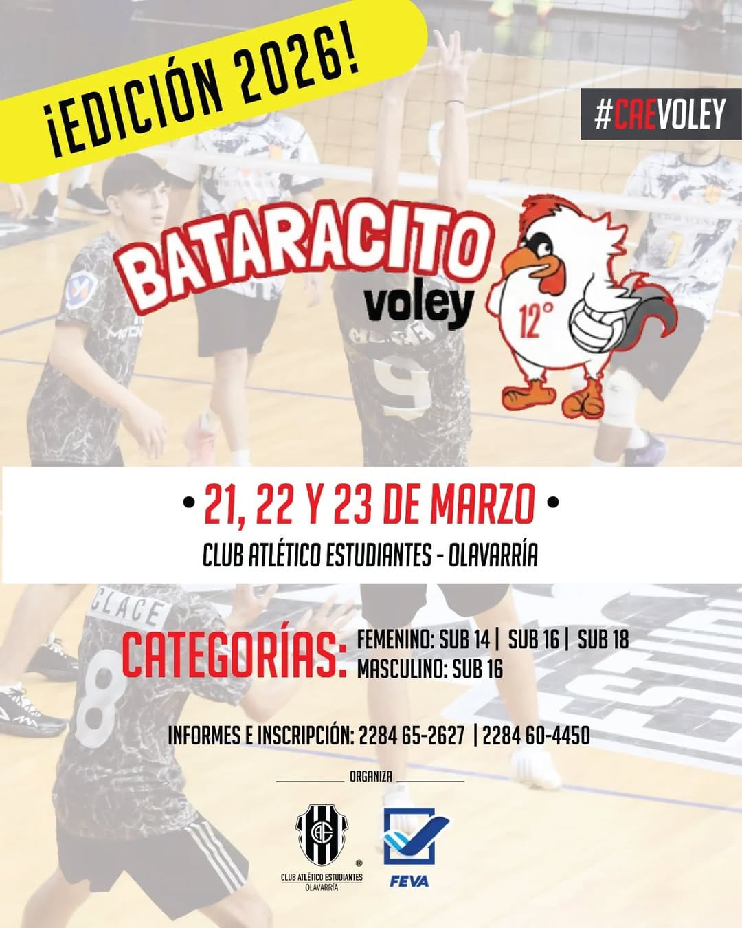 El Club Atlético Estudiantes organiza una nueva edición del Bataracito Vóley, uno de los torneos formativos más representativos y tradicionales de la disciplina dentro de la institución.